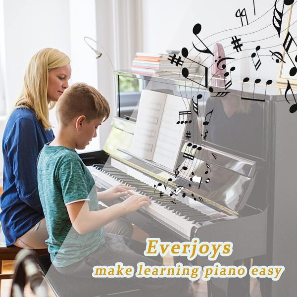 Clear and Visible: The labels are printed with large, bold letters and symbols, making it easy for beginners to read and understand the notes. You’ll never get confused about which key to press again.